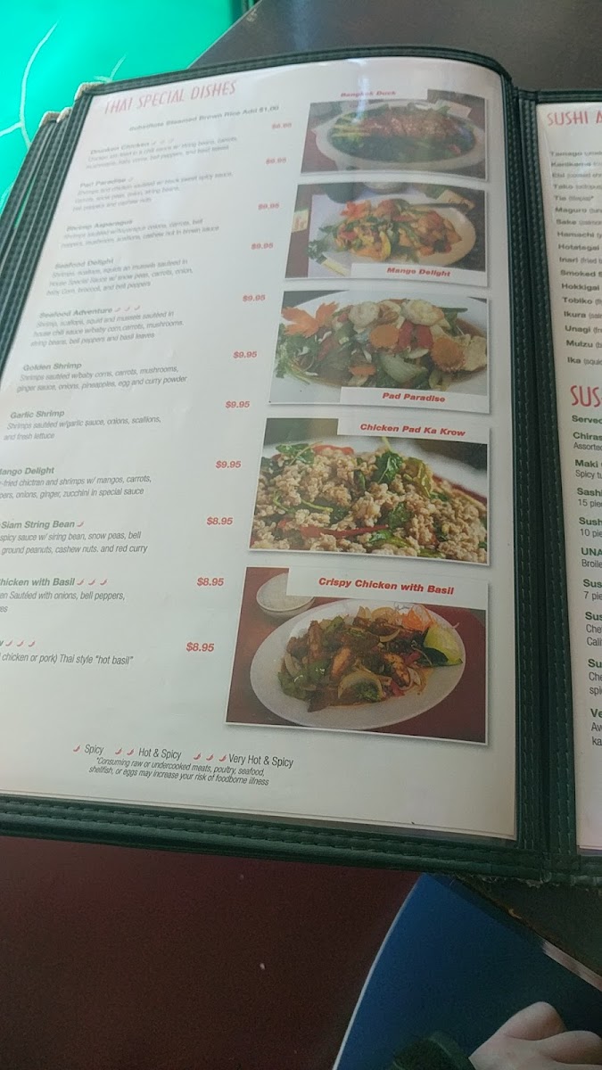 Very hot & spicy. Deep-fried whole tilapia topped with bell peppers, onions, basil leaves, carrots in Thai chili sauce.